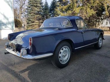 This 1959 Alfa Romeo Giulietta Spider Veloce 750F is finished in Skipper Blue over a creme leather interior and comes with a color-matching Pininfarina hardtop. The previous owner was a longtime mechanic who worked for a notable Alfa Romeo shop in Michigan and owned the car for over 40 years.