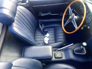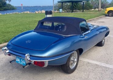 This 1970 Jaguar XKE Roadster was reportedly purchased new in Germany by an American serviceman at Peter Lindner’s dealership. In 1972, the original owner is said to have damaged the engine while racing a Ferrari on the autobahn, so a replacement 4.2-liter block was installed by a Jaguar dealership. The second owner acquired the car while stationed in Germany and imported it to Ohio in 1979. A restoration was commenced in the 1990s and included an engine rebuild, bodywork and corrosion repair, a repaint in factory Opalescent Silver Blue. Over $18k has recently been spent completing the restoration, correctly sorting the vehicle, and returning it to largely factory spec throughout, including a new top, redone interior, and extensive mechanical servicing.