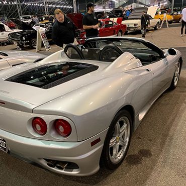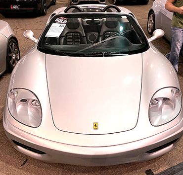 This Ferrari is finished in Argento Nurburgring Silver over Nero Black premium leather multi-way Daytona-style seats. It is powered by a 400hp 3.6-liter VB engine coupled with an F1 paddle-shifted 6-speed automatic transmission. Interior features include power windows and mirrors, keyless entry and air conditioning. Exterior features include rear challenge-style black grille and gray aluminum brake calipers.